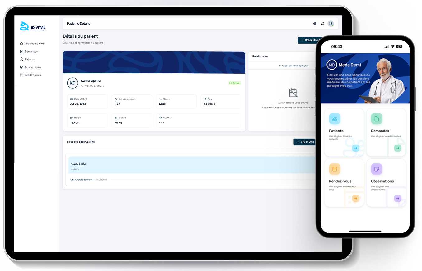 Facilitez vos interventions, centralisez vos observations et accédez rapidement aux dossiers médicaux de vos patients grâce à une application pensée pour les professionnels de santé.